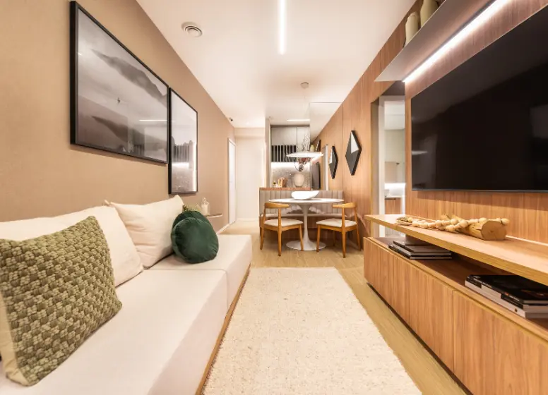 O lazer é um dos grandes diferenciais, com brinquedoteca, coworking, piscinas adulto e infantil, churrasqueira, salão de festas, espaço gourmet, pet care, home cinema, playground, sauna, fitness e mais. O condomínio também conta com infraestrutura planejada para economia de energia, coleta seletiva e medição individual de água e gás.